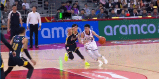 上半场广东凭借胡明轩节末阶段的关键3+1,艰难取得56-55领先。