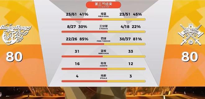 后半节徐杰重新出场,上来就送失误+三分三不沾,萨林杰稳稳2罚后飚进关键三分,奎因成功制造范汇鎏5犯打进2罚,三节战罢,广东80-80战平北控。