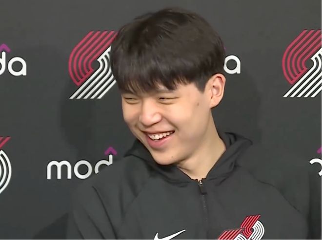 与2个月前选秀大会的发布会相比,杨瀚森没有变的是那标志性的笑容。变的是他的英语水平肉眼可见的进步了。
