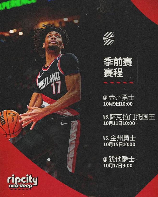 本月9日,开拓者就迎来今年季前赛的首战,客场VS勇士;10月11日,主场VS国王;10月15日,主场VS勇士;10月17日,客场VS爵士。