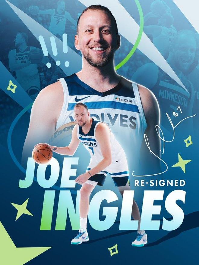 在今年夏天,森林狼与英格尔斯签下一份1年360万美元的合同,开启个人第12个NBA赛季。在24-25赛季,英格尔斯为森林狼出战19场比赛,场均6.3分钟的出场时间,贡献0.8分1.3助攻。