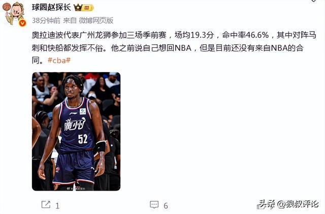 CBA抬价神助攻威少与国王签约后奥拉迪波未来去向引关注