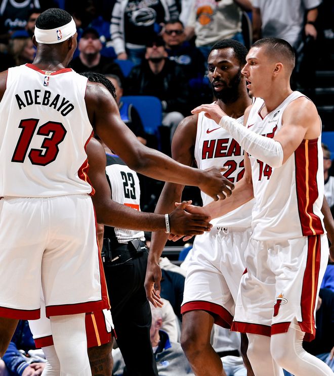 NBA杯1/4决赛,热火在开场打出15-0,最多领先魔术16分的情况下被逆转了,第三节他们就开始崩盘,末节进入决胜时刻鲍威尔、希罗两个持球点连连打铁,威金斯末节5中4,阿德巴约末节4中3苦撑,而鲍威尔3中1+希罗4中0太次。