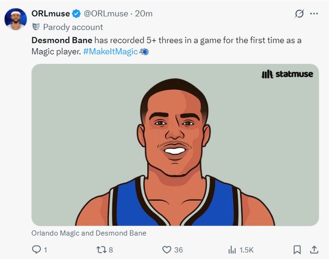 贝恩也完成了他魔术生涯首次单场命中5+三分球,实际上贝恩全场比赛命中了6个三分球。