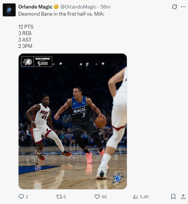 第三节的贝恩也很出色,单节7中4+三分2中2拿到10分2篮板1助攻,但他最高光的还是末节开场,他末节开场2分钟里连拿9分,就连NBA官方都为贝恩唱赞歌。