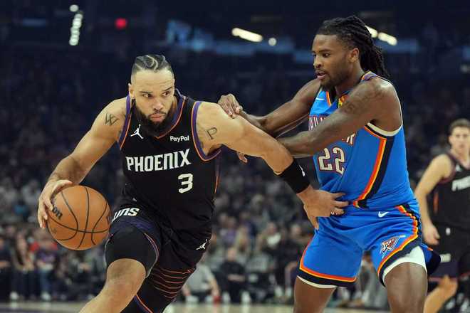 前一场大胜国王后,太阳队迎来与雷霆队的强强对话,在上半场一直被压着打的情况下,太阳队依靠强硬防守咬住分差,下半场太阳队找回进攻手感,最终依靠布克的三分绝杀以108-105击败联盟第一雷霆。
