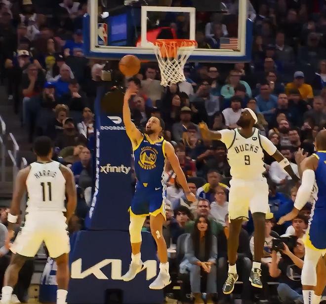 末节库里抛投继续命中,但雄鹿将分差缩小到10分,库里连续两次出手不中雄鹿将分差缩小到7分,最关键的时刻库里命中一个三分球,这个三分球直接将比赛拿下,但场边的裁判示意是一个两分球,但这一球命中勇士还是锁定胜局了。