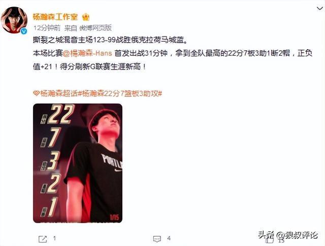 媒体人“麦穗丰”发文点评:在凌晨才抵达波特兰且背靠背出战的前提下,杨瀚森今天贡献22分7篮板3助攻1抢断2封盖,帮助撕裂之城混音以123比99大胜俄城蓝色,他的赛场表现和存在感是肉眼可见的提升,真的变强了。