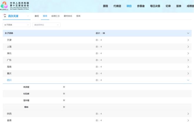 刘宇婕出现在第十五届全运会高尔夫女子团体赛四川队报名名单里。