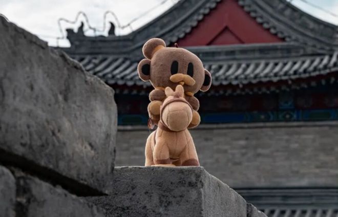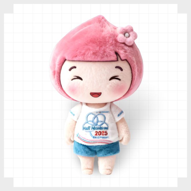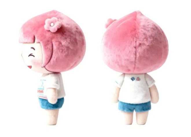 本周的桃花马以平谷特色桃花为灵感设计——粉色毛绒的桃子头上是一朵桃花,穿的衣服上则是有比赛标识的印花。“桃花马”,寓意“一路繁花,奔向胜利”。