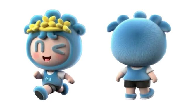 作为合肥马拉松的官方“吉祥物”,合合有着圆滚滚的头、象征巢湖的浪花样蓝色卷发,戴着簪有合肥市市花桂花的空顶小黄帽。它穿着印有“合合”字样的蓝色背心,一边wink一边奔跑。