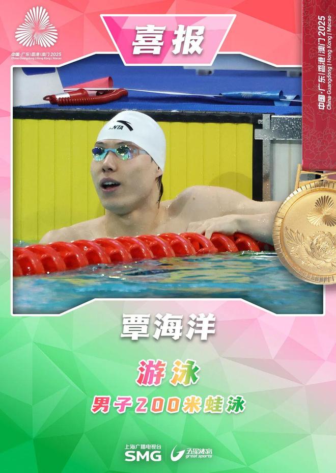 - 11月15日,全运会男子200米蛙泳决赛上演,来自上海队的名将覃海洋表现出色,以2分07秒69获得冠军,这也是覃海洋本届...发表于: 11-16 12:19