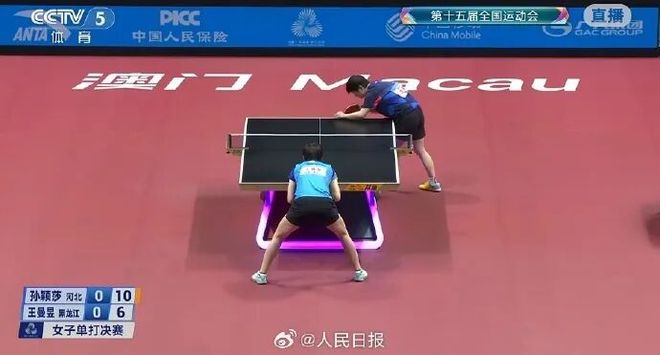 11月16日晚,十五运会乒乓球项目在澳门银河综艺馆展开女单决赛争夺。刚刚,黑龙江队选手王曼昱战胜河北队选手孙颖莎,夺得冠军。