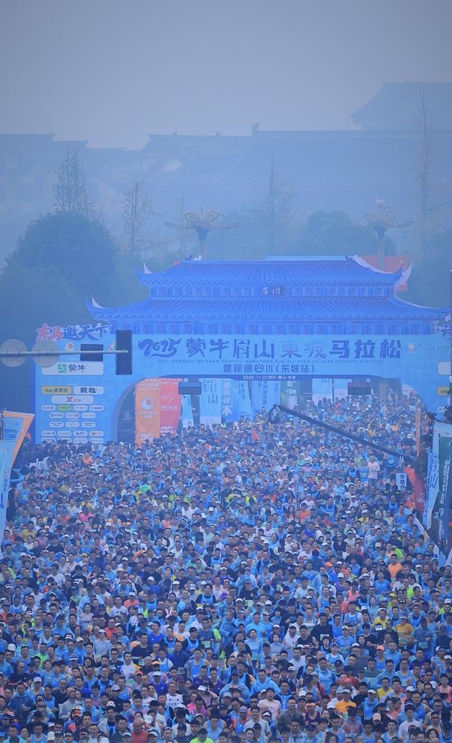 初冬的晨曦中,奔跑的脚步声惊醒了岷江的薄雾,跃动的身影倒映在东坡城市湿地公园的水面上。这座千载诗书城,正在用一场全城狂欢重新定义着它的城市脉搏。11月23日上午8时,2025蒙