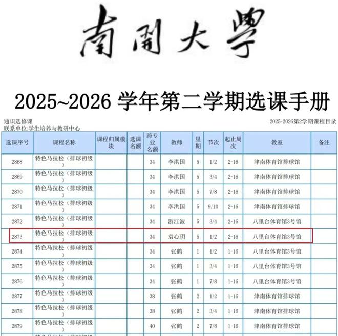 中国女排奥运冠军袁心玥出现在了南开大学2025-2026学年第二学期的排球选修课老师名单上,她已经入职南开大学,迎来人生的转型,从一位排球运动员变成大学老师。袁心玥目前才29岁,此前她因为伤病缺席2025粤港澳全运会,如今成为南开大学的老师,这一切的转变实在太快。