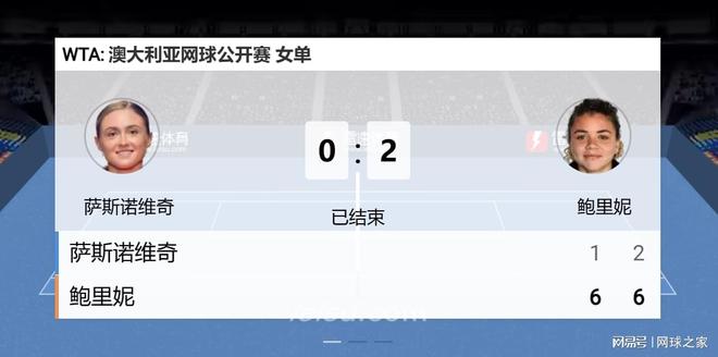 看到她从第七局状态似有较明显的提升,奋起反击将比分追至2比5后,直播间的球迷和网友还预测,估计鲍里妮想结束战斗真要费一番功夫了。无奈白俄罗斯姑娘的状态起势太晚了,最终还是让鲍里妮以6比2结束战斗,遭到了无情血洗,成为了鲍里妮澳网首秀就炮制惨案下的女主,单打之旅像烟花般一闪就结束了。