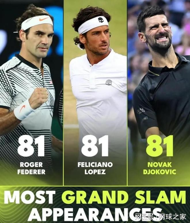 此前费德勒曾以81次征战大满贯,同菲洛佩兹并列成为史上第一。现在德约也加入了他们的行列,三人并列第一,而且用不了多久,塞尔维亚天王就能将这一纪录彻底改写,成为这项纪录的第一人。