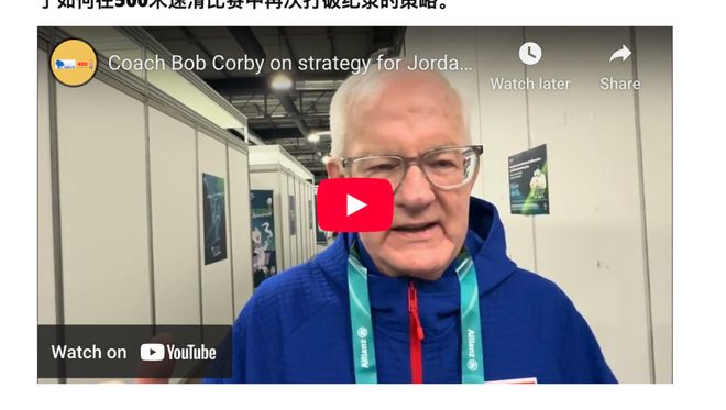 后来,我去浏览了《华盛顿县知情者》,发现她在乔丹-斯托尔兹赢下第一枚奥运金牌后,就采访了他和他的教练鲍勃-科尔比。这两个采访都既有文字版,又有视频版(视频版并不长,都在3分钟以内)。《华盛顿县知情者》网站上挂载的视频来自YouTube。换言之,朱迪-斯蒂芬斯在YouTube上也有自己的频道。