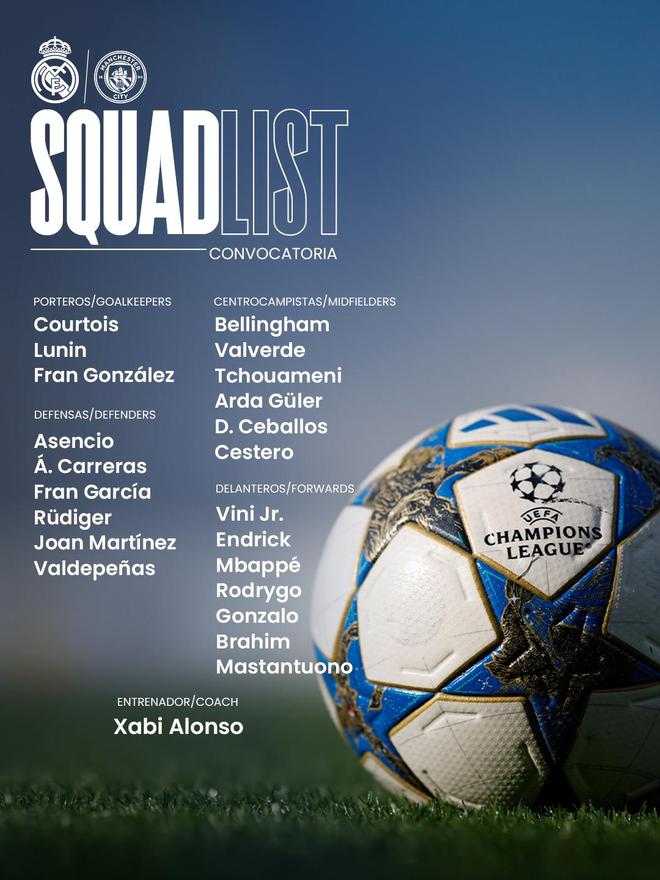 皇马公布欧冠战曼城大名单:姆巴佩带伤入围,一线队后卫仅4人在列