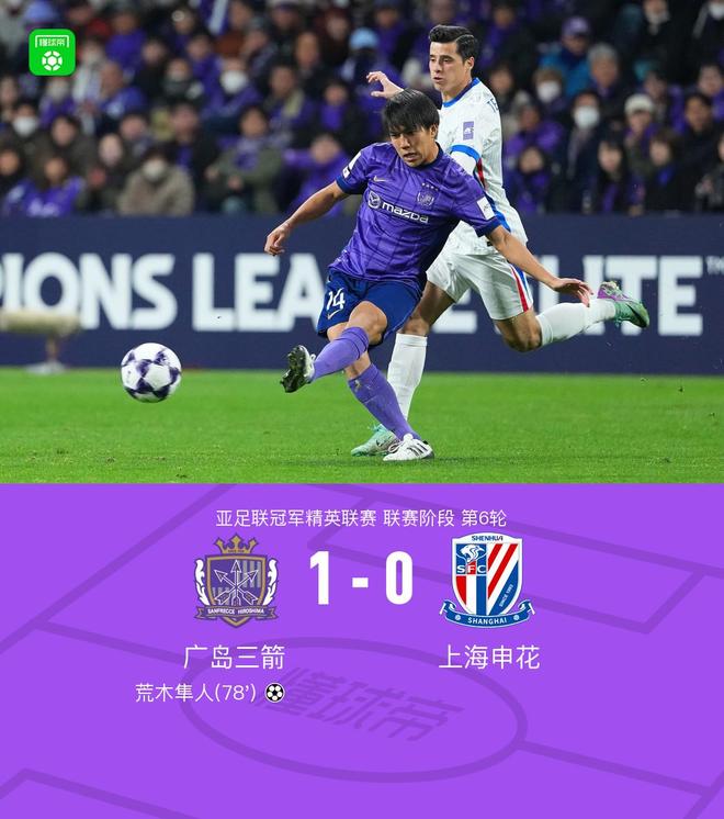 北京时间12月10日亚足联冠军精英联赛联赛阶段第6轮,广岛三箭对阵上海申花。上半场,安德烈-路易斯错失良机,随后中柱,下半场,荒木隼人头球破门。最终比分广岛三箭1-0战胜上海申花