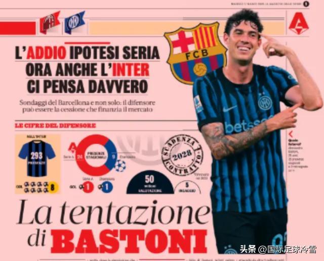 近期国米的消息很多。有些消息,不值一哂。比如《米兰体育报》报道,国米可能出售巴斯托尼,这位国米队副也有意离队。国米打算降价,5000万就愿意出售。巴斯托尼连场被嘘,压力很大。