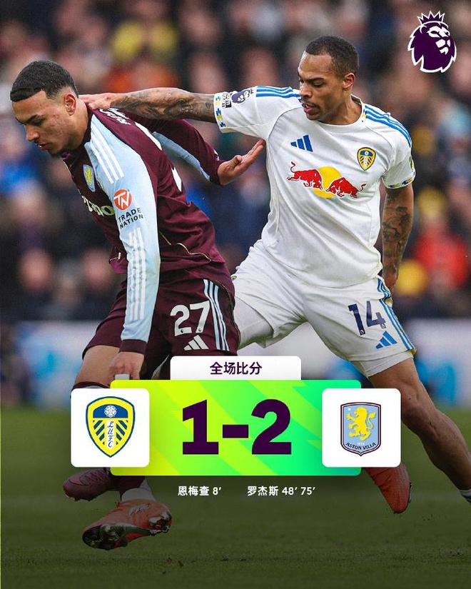 第8分钟,利兹联任意球进攻,门将大马丁内斯解围失误,恩梅查头槌破门,帮助利兹联1-0领先。