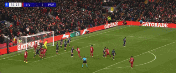 开场仅仅4分钟,利物浦被判了点球,一次角球防守,范戴克禁区高高举手挡下了皮球,随后佩里西奇主罚命中,帮助埃因霍温客场1-0取得梦幻开局。