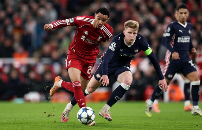 下半场第55分钟,利物浦再度落后,凯尔凯兹跟防没跟住,目送蒂尔推射破门,帮助埃因霍温2-1再度领先。