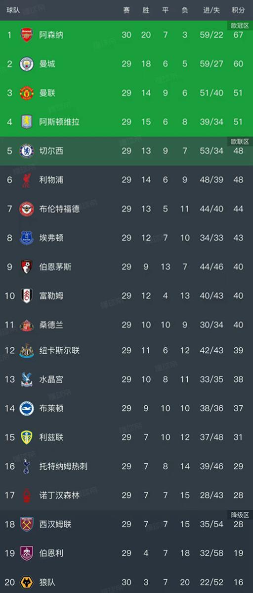 北京时间3月6日,随着热刺1-3不敌水晶宫,英超第29轮结束了所有比赛,我们看看积分榜排名的更新!英超最新积分榜热刺这个赛季成为鱼腩球队让人没有想到,要知道他们可是BIG6的一员,以