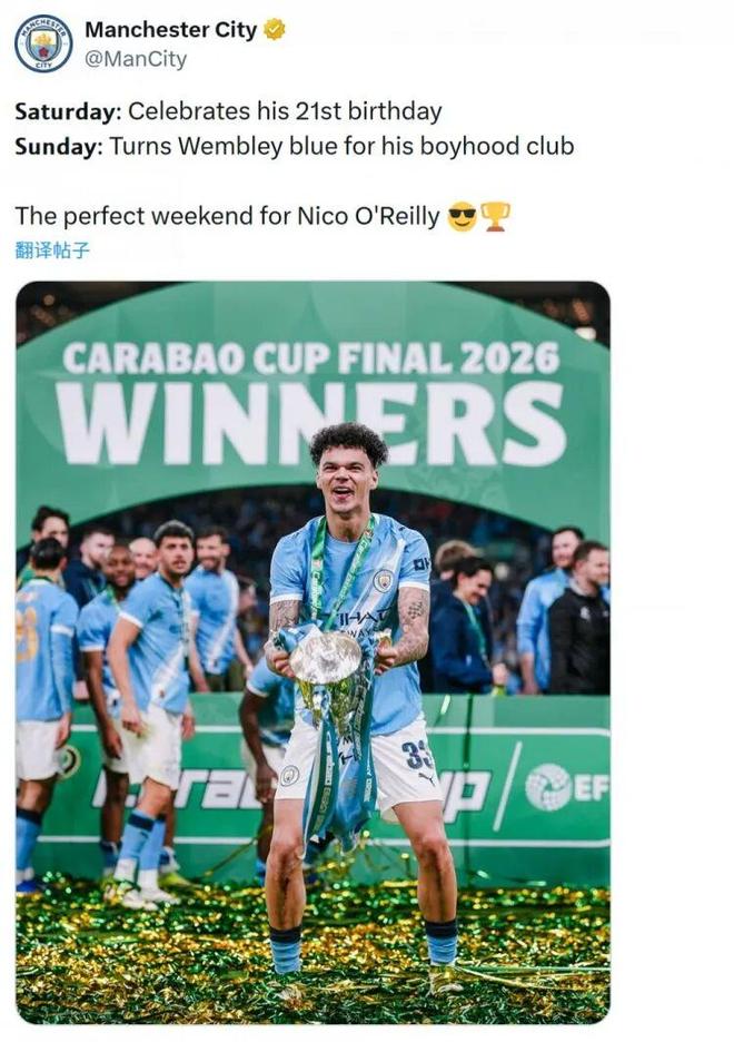 当奥赖利在温布利高高跃起的那一刻,曼城的未来,正在被这些年轻人一笔一画认证的。