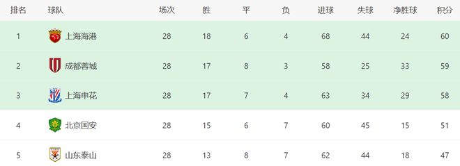 赛前积分榜,上海海港积60分高居第一,成都蓉城积59分位列第二,上海申花积58分排名第三,三队只有2分的差距,争冠非常激烈。
