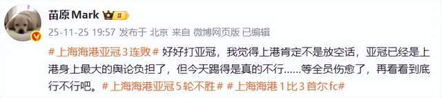 - 北京时间2025年11月25日晚,亚冠精英联赛第五轮的比赛继续进行,新晋中超冠军上海海港在家门口以1-3负于首尔FC...发表于: 11-26 09:17