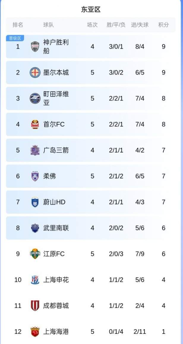 输掉主场与首尔FC的比赛之后,亚冠积分榜也有了新的变化,这支中超冠军,5轮过后,只拿到1分,继续排名东亚区倒数第一。
